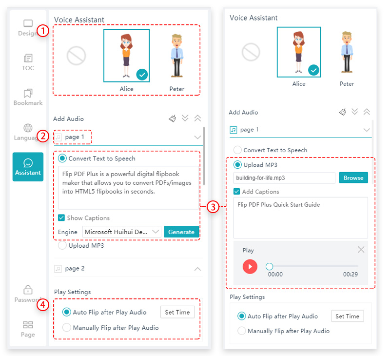4. After adding audio for all the pages, you can choose [Auto Flip after Play Audio] or [Manually Flip after Play Audio]